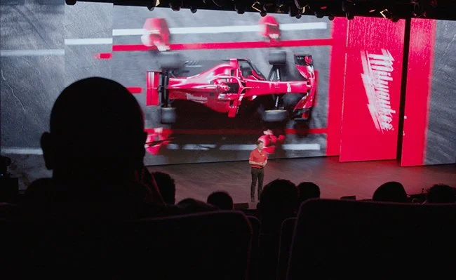With the conference being hosted in Monte Carlo, we united the event theme around the iconic Formula Grand Prix. The challenge was to portray all of Milwaukee’s product range, their teams and their latest innovations and achievements, all within two-minutes. I wrote and storyboarded a concept which was to utilise the brand’s latest M18 battery as a vessel that would lead the audience around a race track, passing all elements that make up the brand in quick succession.